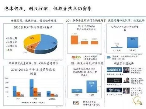 最近大家都在說的互聯網寒冬,實際上與目前市場的估值過高不無關系。從上面左邊兩個圖我們可以看到,確實在VC眼中,現在的項目太貴,在創業者看來,又找不到投資。賣者不愿意降價,買者不愿意付費,所以市場就會變得冷清。從投資案例數看,2015年是非常好的一年,但是從今年前半年的數據看,如果后半年跟前半年一樣的話,今年整體的投資案例數大概只能達到2015年的水平。從這個角度看起來,大家可能會有一些擔心,但是實際上不是這樣。雖然數據告訴我們整個大環境可能有點問題,像P2P、O2O可能開始有點讓人擔心,但是有不少的領域還是非常火。例如人工智能、AR、VR、教育市場等這幾個市場都非常火,都發展得非常好。這些重點成長的領域或者所謂的風口,其實投資量是在增加的。創新工場投資的幾個案子,包括馭勢科技吳甘沙,包括第四范式,這幾個公司都是在所謂的泡沫,所謂寒冬的時候用非常好的估值融到下一輪。雖然他們沒有足夠大的收入,但當這些公司有很棒的創始人,找到了一個好的風口時,他們其實是不需要擔心投資的,而相應的,VC也不需要再去看過去的什么紅海了,而是把時間放在看這些新的崛起的領域有什么機會。貳 創新工場的投資策略下面這張圖內容非常豐富: